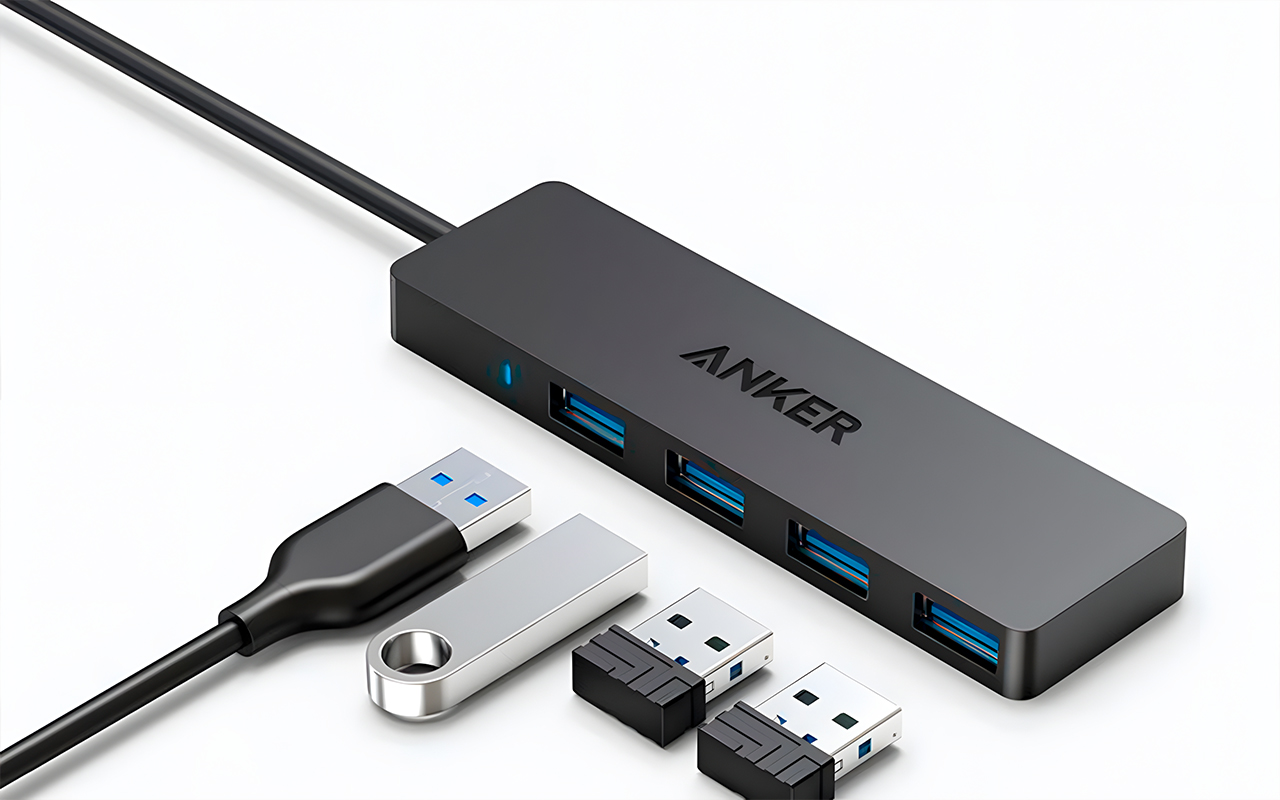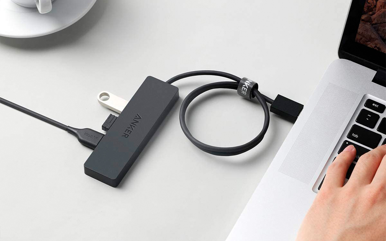 Многие производители ноутбуков, стремясь к минимальным габаритам устройства отказываются от классических разъёмов USB-A или сокращают их количество до минимума в пользу USB-C. Это создаёт неудобства, ведь множество периферийных устройств, таких как мыши, клавиатуры, флеш-накопители и принтеры, по-прежнему используют интерфейс USB-A. Решить эту проблему можно с помощью USB-хаба Anker (A7516). Он позволяет превратить один порт вашего компьютера в четыре полноценных разъёма USB-A.