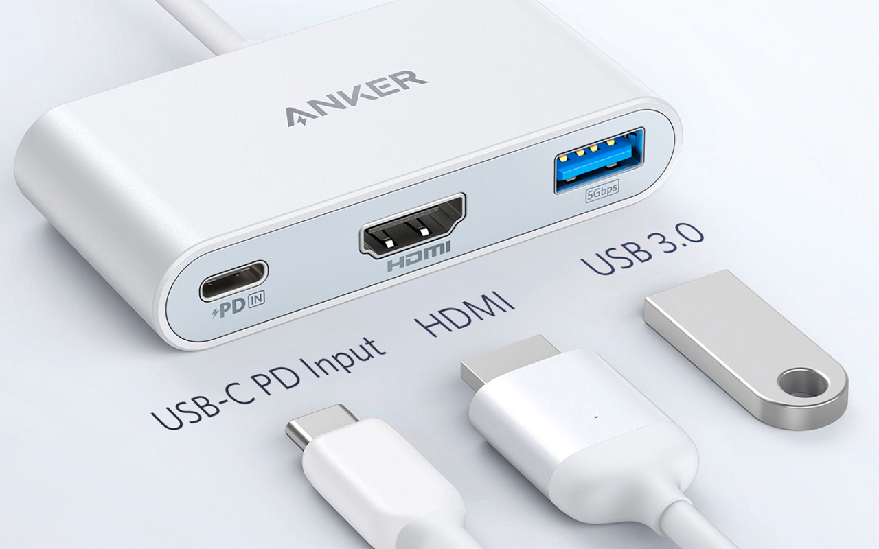 В эпоху ультратонких ноутбуков мы часто сталкиваемся с проблемой нехватки необходимых портов. Некоторые лэптопы и вовсе имеют лишь по два разъёма USB-C, причём один из них часто используется для зарядки девайса. В таких случаях нам приходится по несколько раз переподключать аксессуары, чтобы выполнить даже простейшие рабочие задачи. Решить эту проблем можно с помощью качественного USB-хаба Anker PowerExpand (A8339). Он превращает один порт USB-C вашего ноутбука в три – это порт для «сквозной» зарядки Power Delivery, выход HDMI и разъём USB-A для передачи данных.
