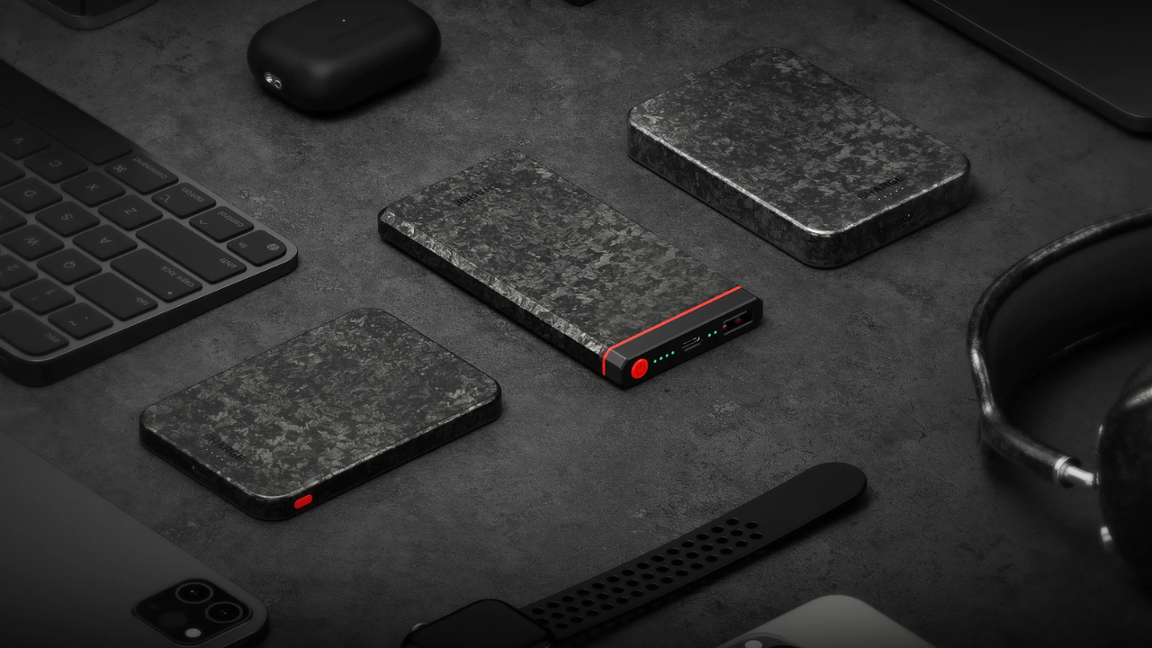 CarbonMag – это не просто внешний аккумулятор, это аксессуар из карбона: тот самый материал, который ассоциируется со спорткарами, авиацией и защитными решениями. Карбон даёт ощущение прочности и лёгкости одновременно – как будто держишь в руках маленькую броню для телефона. При толщине всего 9 мм и весе 120 г он остаётся ультракомпактным: в руке почти не чувствуется, но выглядит надёжно. Такой корпус спокойно можно доставать на деловой встрече – он не кричит “я пауэрбанк”, а скорее шепчет “я сделал своё дело”.