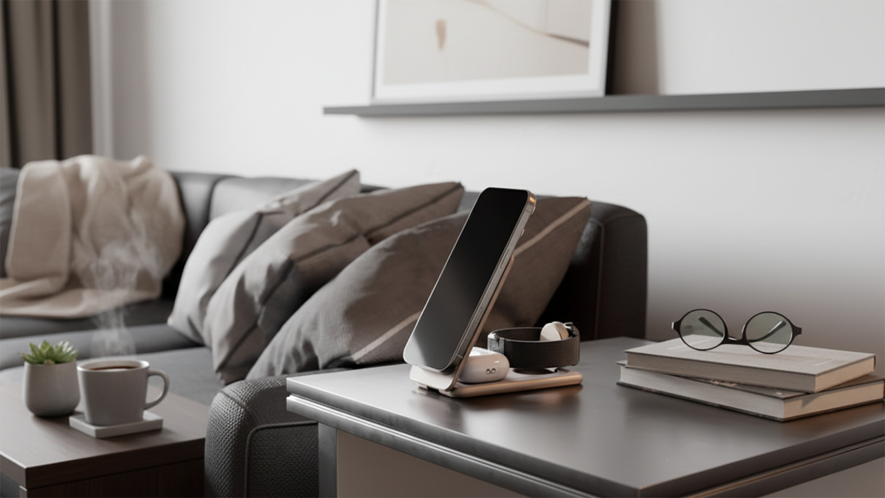 Конструкция VLP Alum Power Pro предусматривает три зоны зарядки. Верхняя платформа предназначена для смартфона и поддерживает стандарт Qi2, обеспечивая мощность до 15 Вт. Так что станция разрушает и миф о том, беспроводная зарядка – это медленный вариант, восполняя до 50 процентов заряда на 30 минут. На нижней части расположена 3-ваттная зона для Apple Watch и место для AirPods с 5-ваттным питанием. А главное – все они могут одновременно быстро и безопасно восстанавливать энергию.