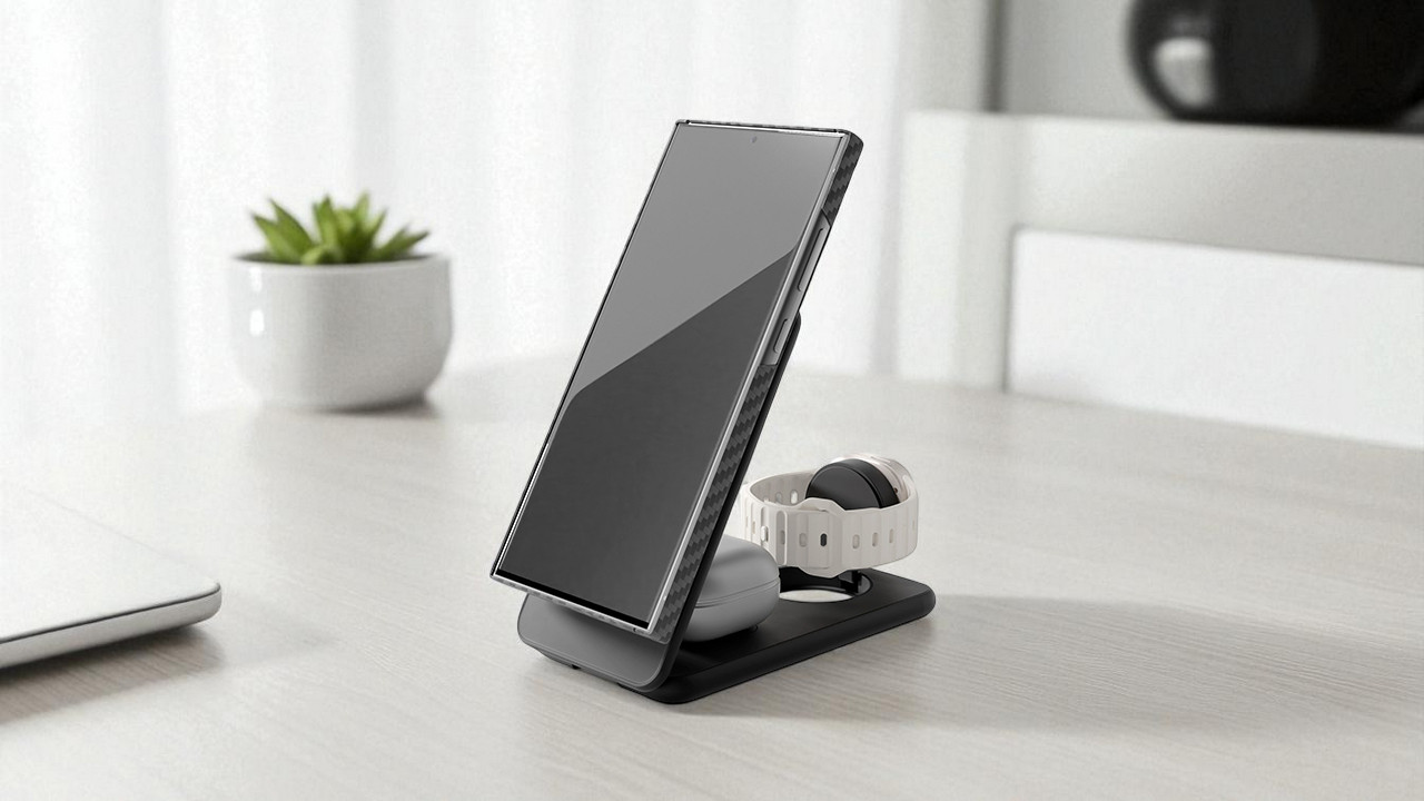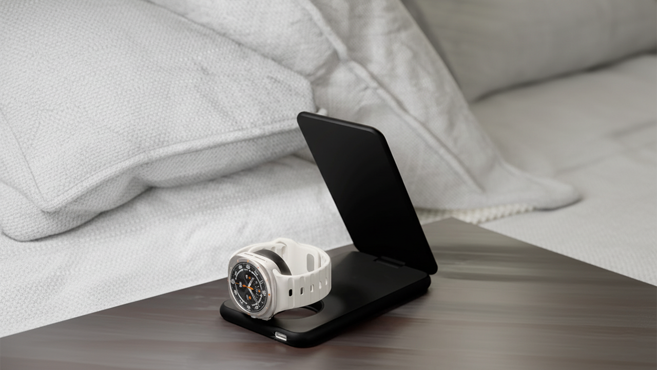 VLP Alum Power Pro – многофункциональная станция, способная одновременно заряжать сразу три устройства. Верхняя платформа предназначена для смартфона, поддерживает мощность до 15 Вт и имеет сертификацию Qi2. Вторая зона, расположенная в основании, помогает без проводов подзарядить наушники (до 5 Вт). Здесь же находится крепление для Galaxy Watch, которое поддерживает мощность 3 Вт. И никаких сложных манипуляций и поисков нужных кабелей – достаточно просто положить устройства на своё место.
