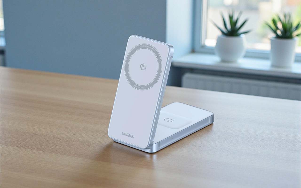 Когда в середине 2025 года Консорциум Беспроводной Зарядки (WPC) сертифицировал новый стандарт Qi v2.2.1, инженеры Ugreen, сразу взяв технологию на вооружение, быстро обновили линейку аксессуаров MagFlow, среди которых и компактная и минималистичная зарядная станция-раскладушка 2-в-1 W756. Модель с поддержкой Qi 2 (25 Вт) позволяет с комфортом заряжать смартфон и TWS-наушники одновременно, а ещё это удобная регулируемая подставка, с которой можно больше не держать смартфон в руках во время созвонов с видео.