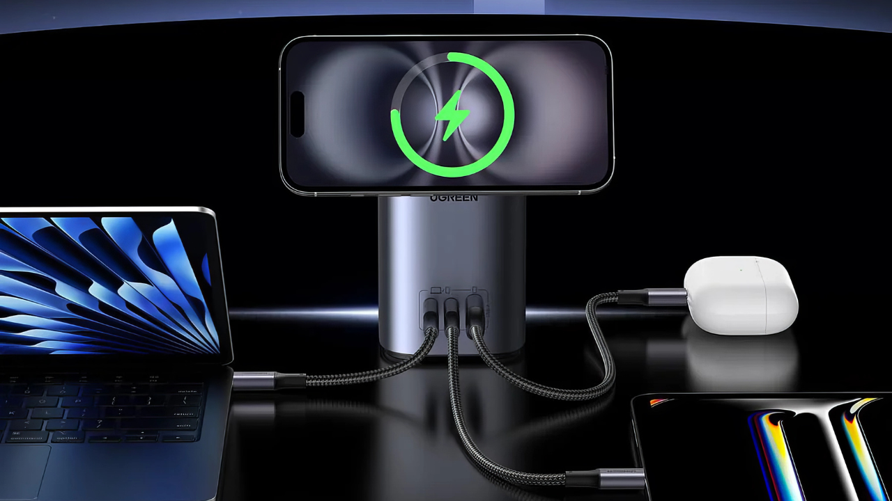 Кто сказал, что зарядка должна быть скучной коробочкой с проводами? В Ugreen придумали устройство, которое превращает сам процесс пополнения энергии в приятный ритуал. Эта складная магнитная станция фиксирует смартфон с поддержкой MagSafe так, будто смартфон “прилип” к ней по своей воле, и одновременно работает как подставка. Хотите смотреть сериал во время ужина? Поставьте телефон горизонтально. Нужно провести звонок в Zoom? Поверните вертикально. Всё – зарядка идёт, а руки свободны.