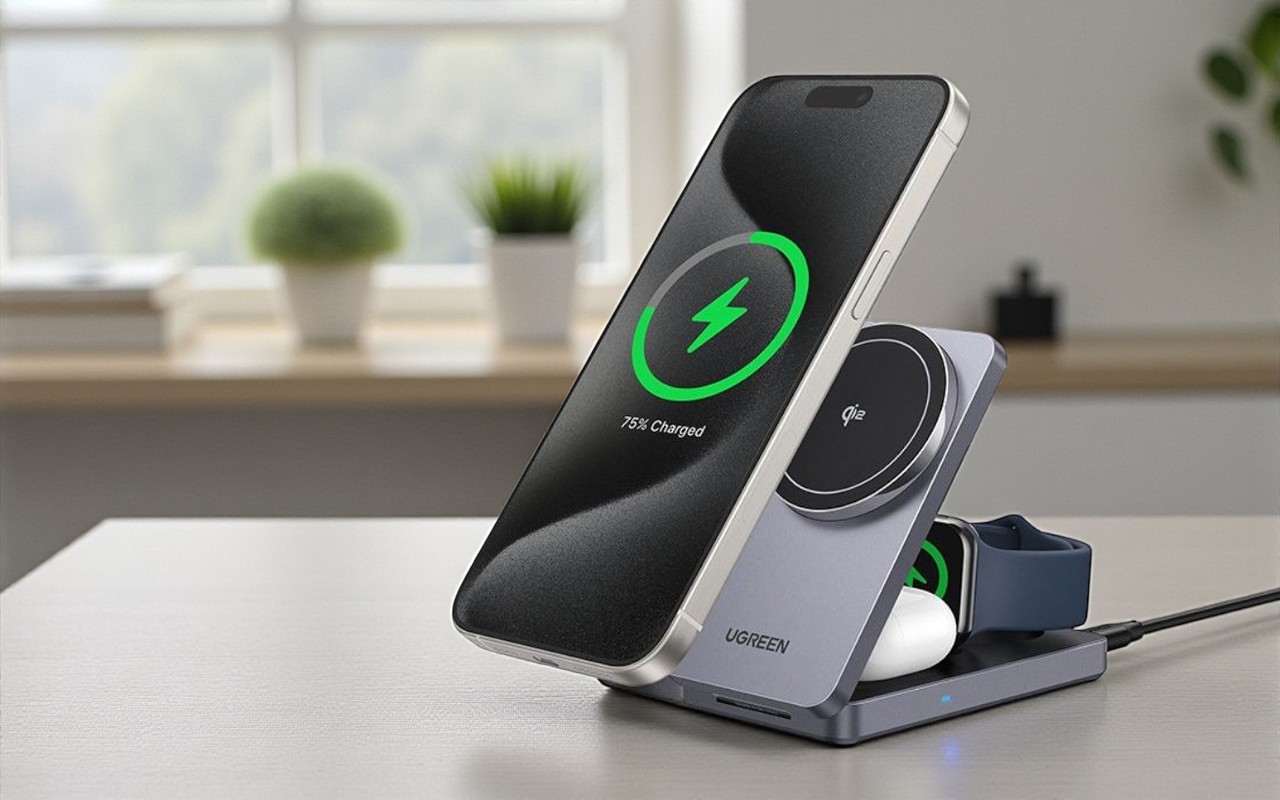 Сильные магниты N52 мгновенно притягивают устройства с MagSafe и выравнивают их для лучшей передачи энергии по стандарту Qi2: iPhone быстро заряжается, получая до 15 Вт, часам и наушникам выделяется по 5 Вт соответственно. Просто разместите устройства на станции, включив её в сеть, и электронная разработка квартирмейстеров из Ugreen сделает остальную работу, чтобы вы и ваша техника были готовы к любой миссии. А если задание выездное, вы всегда можете сложить станцию и взять её с собой.