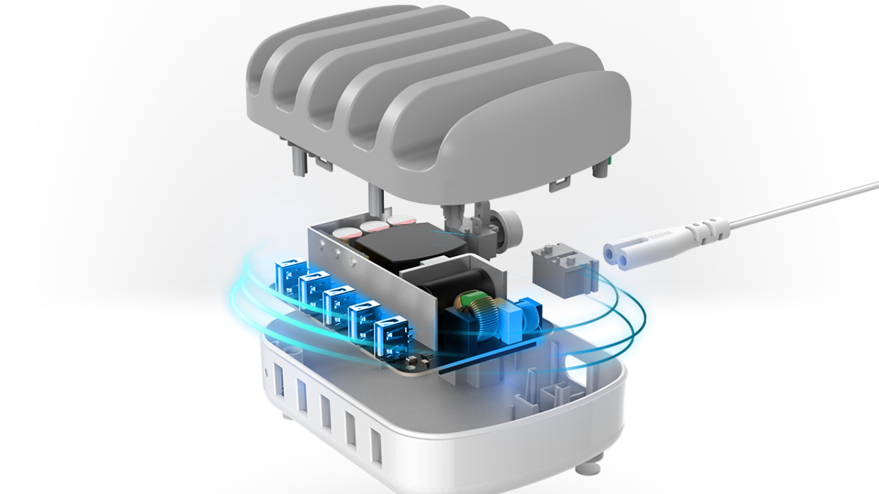 Заряжать пять устройств одновременно – это серьёзная нагрузка, от которой обычные блоки питания иногда очень сильно греются. Здесь инженеры продумали систему пассивного охлаждения: корпус спроектирован так, чтобы тепло эффективно рассеивалось, а «начинка» не перегревалась даже при полной загрузке всех портов. Плюс, на корпусе есть удобная кнопка выключения. Уходите из дома или офиса? Один щелчок – и вся «парковка» обесточена. Не нужно выдергивать вилку из стены или доставать каждый кабель по отдельности.