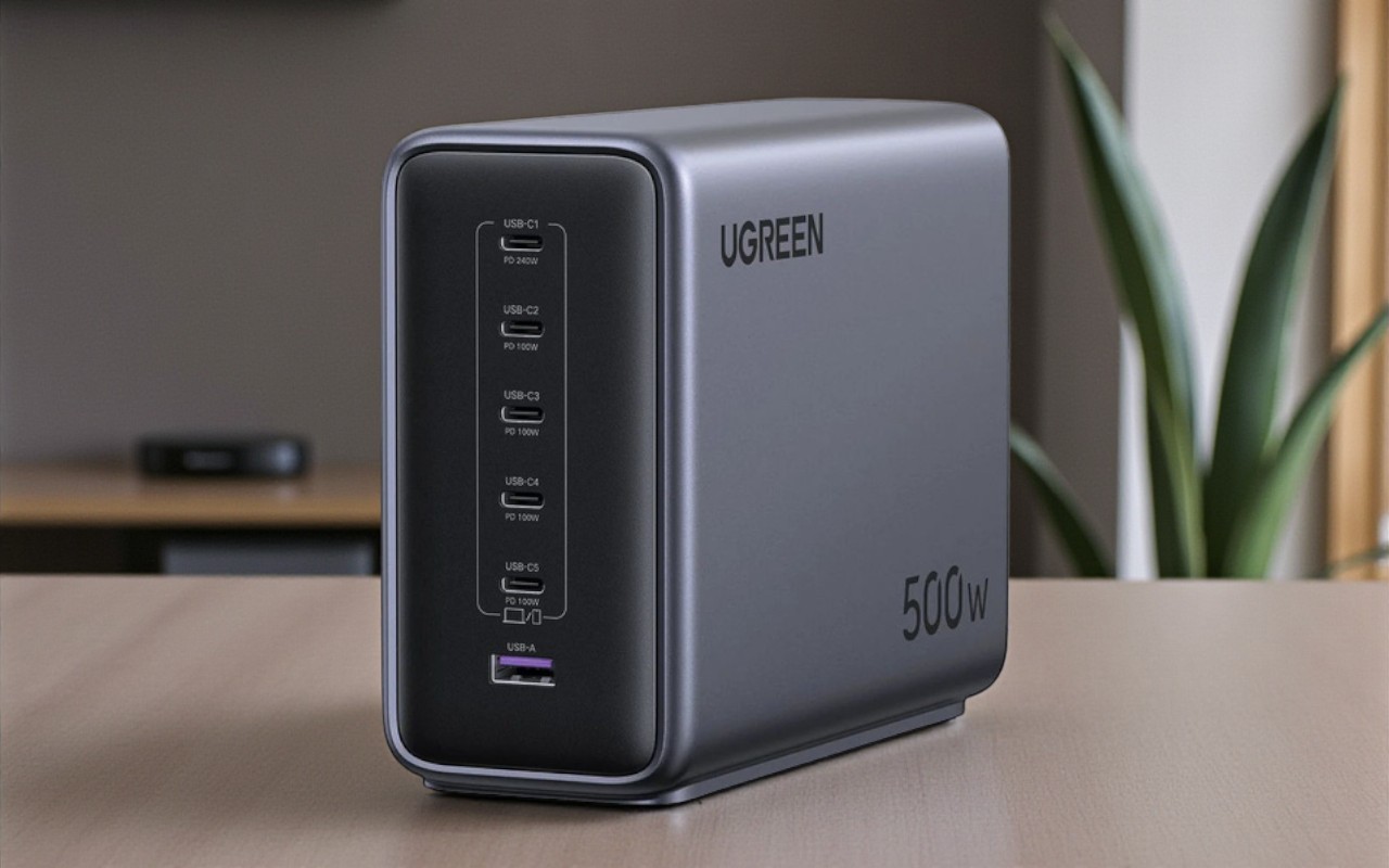 Сетевое зарядное устройство Ugreen Nexode X759 – настоящий «Энергокуб», попавший на Землю с Кибертрона. Его мощности в 500 Вт и множества портов, включающих 5 USB-C, поддерживающих стандарт Power Delivery и 1 USB-A, хватит для питания и зарядки целой уймы гаджетов от одной розетки – от смартфонов, планшетов и мощных ноутбуков до роботизированных форм жизни. Умная система автоматически определит тип подключенного устройства и подаст на него оптимальный ток.