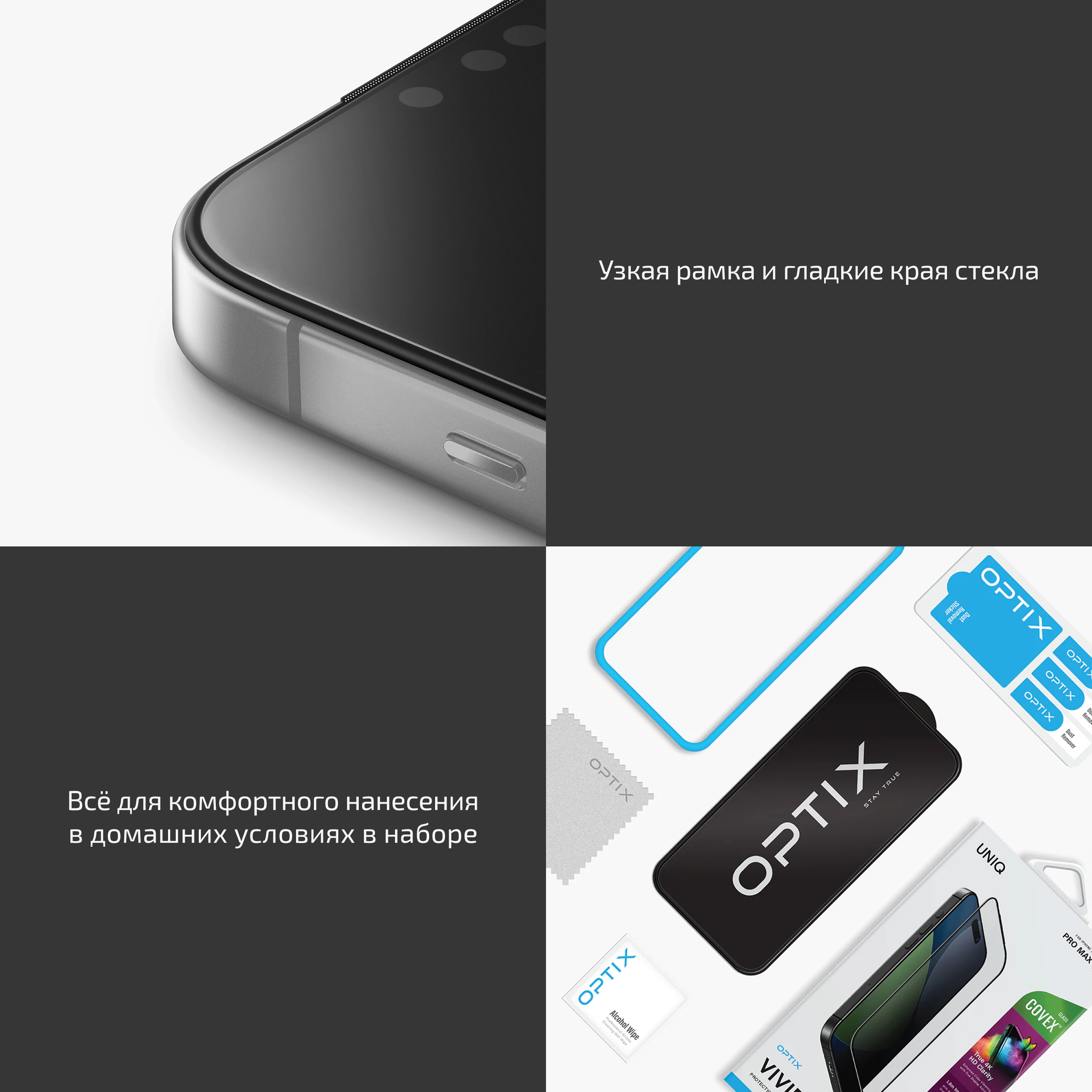 Несмотря на минимальную толщину, Uniq Optix Covex Vivid обладает твёрдостью 9H. Усиленные края и технология закалки обеспечивают надёжную защиту от царапин, сколов и трещин, а испытания подтверждают устойчивость даже к падениям с высоты до 1,8 метра. Есть, конечно, и качественное олеофобное покрытие. Но самое главное, что стекло сохраняет естественную отзывчивость сенсора, точно передаёт все цвета, делая каждое касание таким же приятным, как на оригинальном дисплее.
