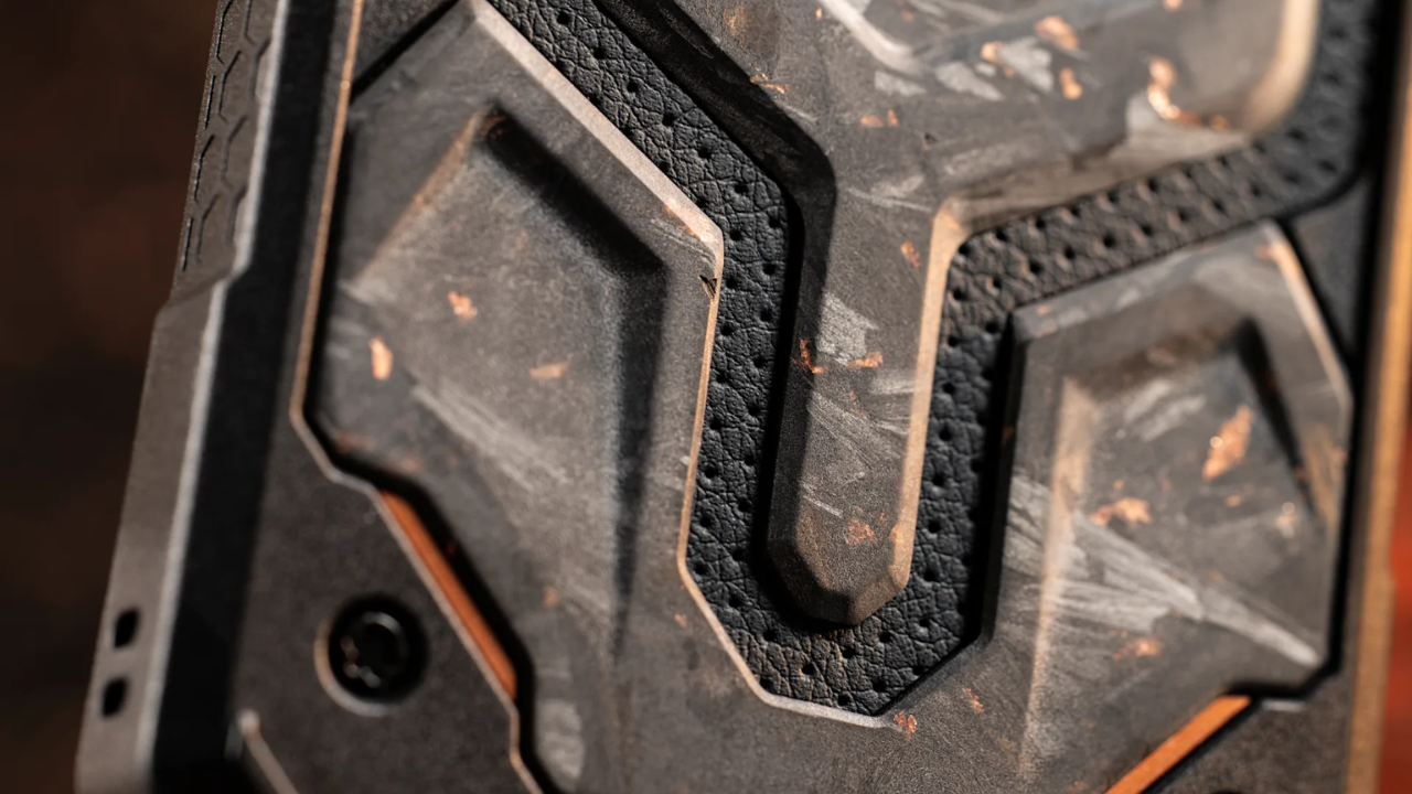 В основе конструкции – композитный гибрид из кованого углепластика, добавляющий не только прочности, но и эстетического вайба “вырос в цеху, прошёл огонь, воду и бетон”. Внутри – ударопоглощающее ядро, поликарбонатная пластина для жёсткости, резиновая окантовка, защищающие скульптурные углы и бронефрейм, прошитый вниманием к деталям. Да, если ваш смартфон упадёт с высоты до 7,6 метров – он, скорее всего, переживёт это лучше, чем вы.