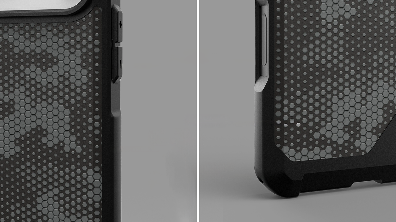 Может показаться, что Metropolis LT — лишь красивый декоративный чехол. Но в нём скрыта многослойная защита. Основу составляет сочетание поликарбоната и термополиуретана, дополненные внутренним бампером с рельефной шестигранной структурой — как у пчелиных сот. Они эффективно распределяет энергию удара, снижая нагрузку на корпус. А скошенные углы усиливают устойчивость при падениях. И даже вставка из экокожи не просто дань стилю, а важный элемент, который повышает прочность всей конструкции.