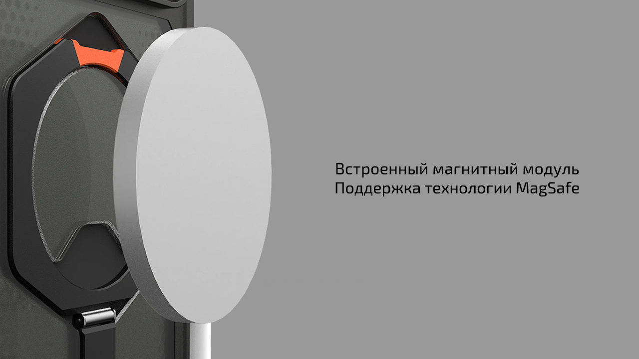 UAG Plasma XTE дополнительно оснащён магнитным кольцом, которое поддерживает технологию MagSafe. Так что не придётся снимать его в те моменты, когда захочется воспользоваться беспроводной зарядкой или внешним аккумулятором. А для тех, кто любит держать смартфон под рукой даже в движении, предусмотрены точки крепления для ремешка. Это особенно удобно при активном отдыхе, в поездках или просто в оживлённом месте, где есть опасения уронить смартфон.