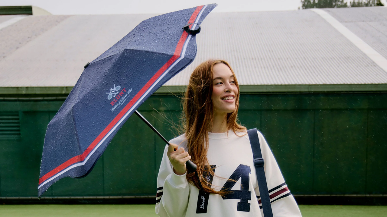 Metro Courtside Navy – это лимитированная версия зонта от бренда BLUNT, вдохновлённая атмосферой классического тенниса и энергией турниров Большого шлема. Спортом, в котором важны не только точность подачи, но и уверенность в каждом моменте. И такой аксессуар ему под стать – он легко вписывается в ваш ритм и не подведёт, даже когда на улице бушует настоящий шторм. На трибуне во время матча или на оживлённой улице – он готов стать надёжным защитным куполом от любой непогоды.